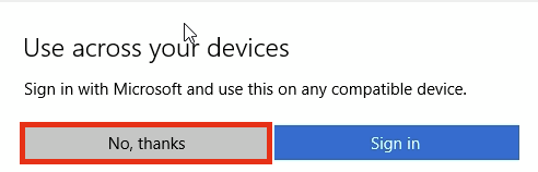 4. If you see the following screen, you can click on No, thanks to skip the sign in