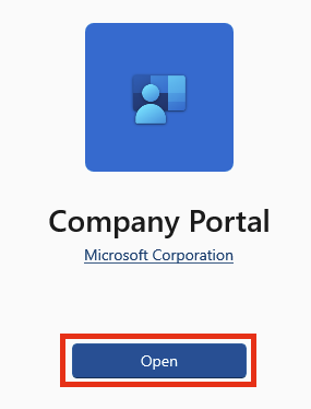 5. Once the installation has completed you can click Open to launch the Company Portal app, or you can launch it from the start menu.
