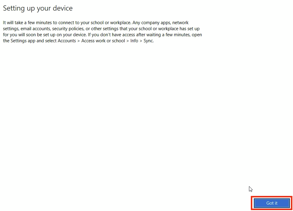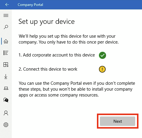 Once you return to the Company Portal app, it will continue to work in the background. When you see the following message, your device is connected to the MDM portal
