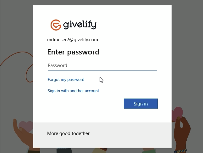 6. If you are not asked to sign in, move on to the next step. If you are asked to sign into the Company Portal app, sign in with your Givelify email.